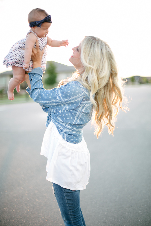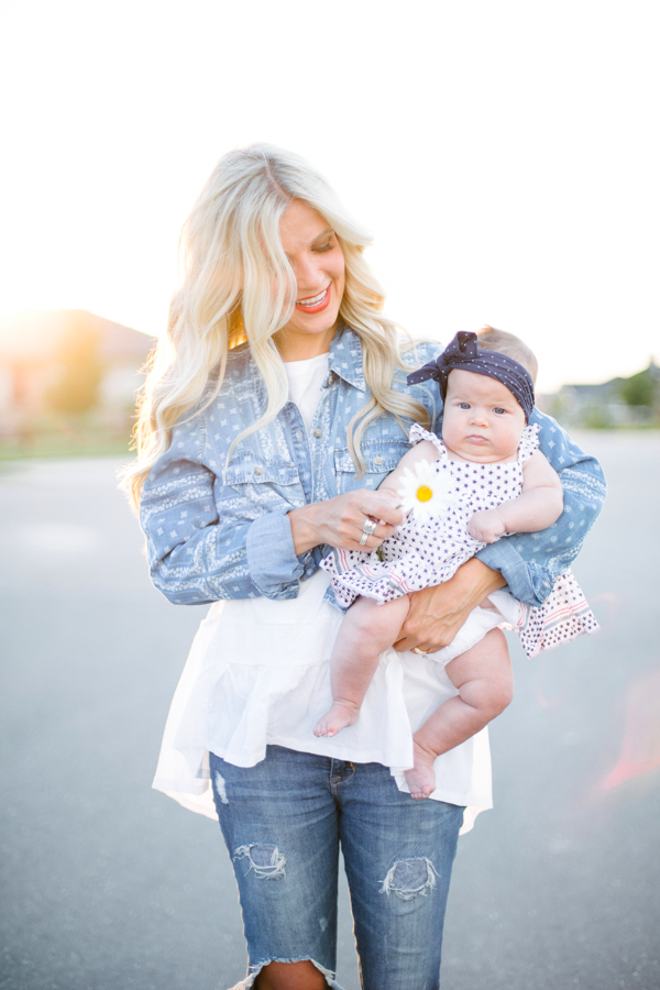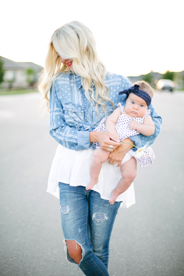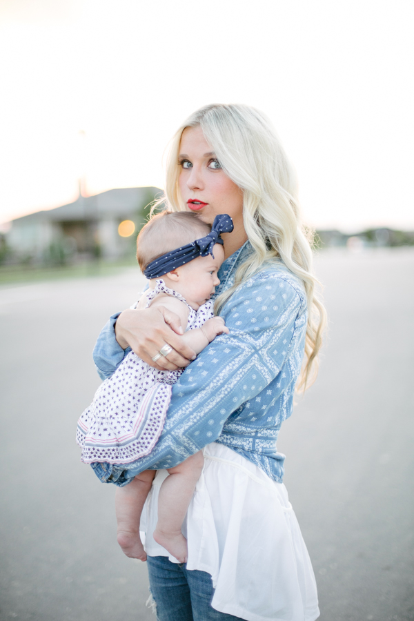 denim: old (similar) | tunic: chicwish (similar) | bandana chambray: F21 | lipstick: mac ‘all fired up’ | boys tees: gap kids (here, here) | baby dress: babygap | bow: baby bling