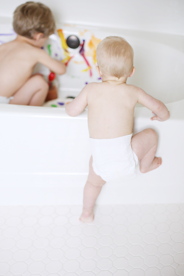 They needed bathing. Badly. As in, it couldn’t wait until after dinner. But Gage insisted he wanted to paint first. So, why not do both? Painting in the bathtub seemed only logical.