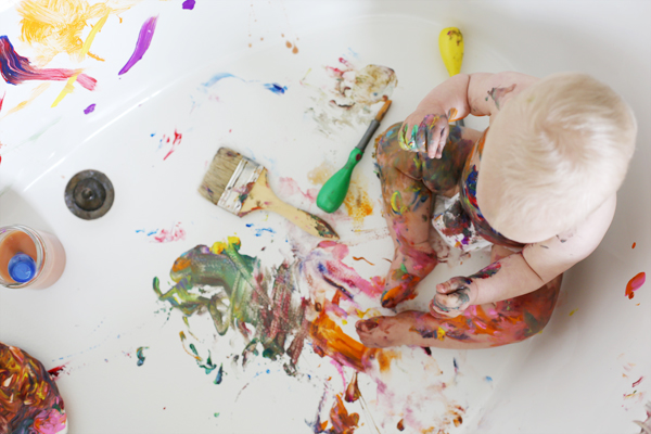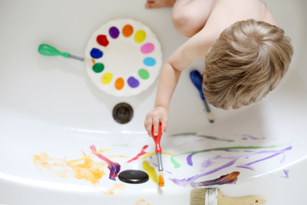 *use non toxic washable paint and no one gets hurt (including the tub).