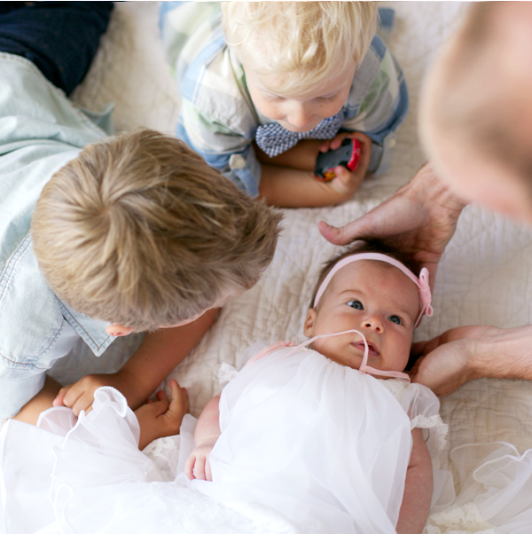 So adorable! Love those huge blue eyes of hers and how sweet your whole family looks in the group picture <3