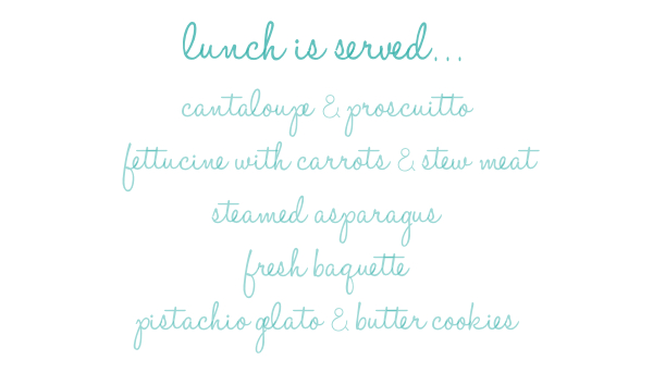 I know, right? THIS is LUNCH? Looks more like a Roman holiday to me!