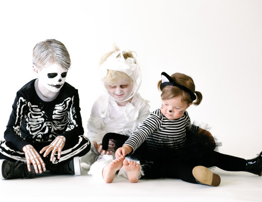 This year we decided to turn back to the basics and go with classic halloween costumes! Skeleton wouldn’t move his face or boney hands for anything! ha! Mummy couldn’t be any happier to look so spooky — sunken…