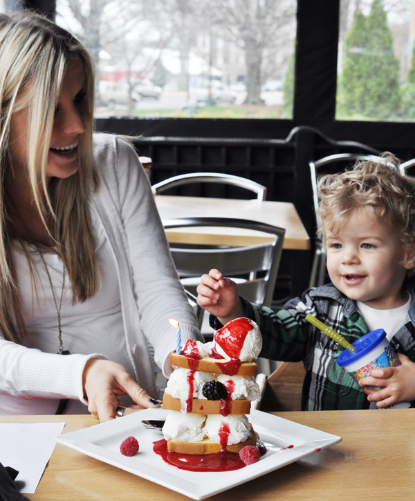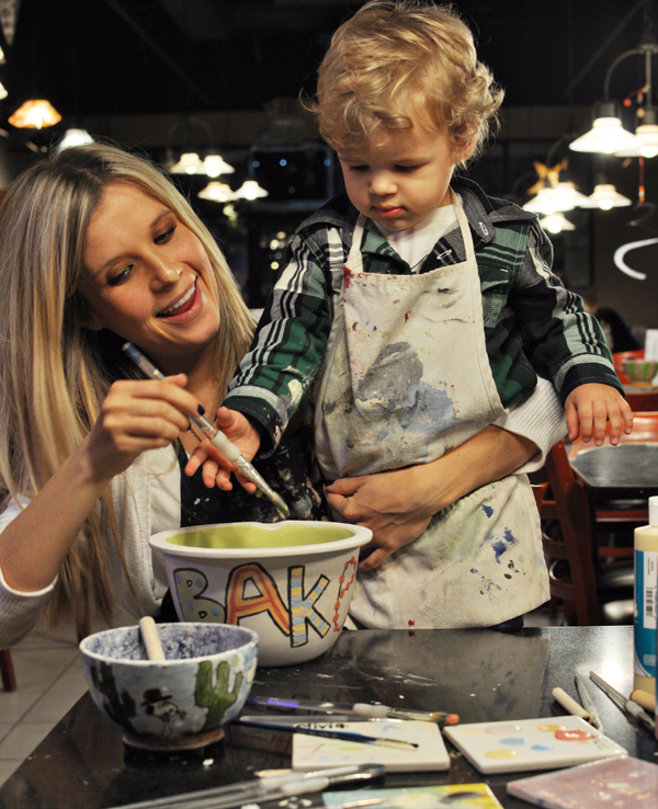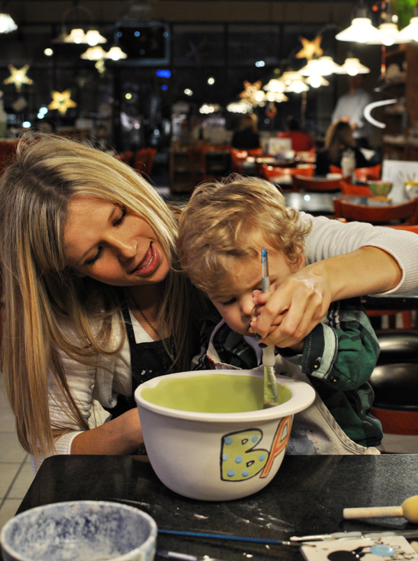 Saturday was all about being lazy and overindulging. We all slept in (talk about the surprise gift ANY mother lives for), whipped up some blueberry pancakes, and played in PJ’s until noon. Next? DING DONG! A special chocolate covered strawberry delivery! Those tasty morsels were just early appetizers to more food of course. For a late lunch, we tried out this place we’ve been eyeing for a year now. The wait has always been too longβ¦ but somehow birthday strings were pulled and we got in! Then it was back home for a family siesta. The evening was spent playing with paint and pottery. We all decided a mixing bowl was fitting since Bubs is my lil’ sous baker.