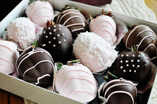 The strawberries are from Shari’s Berries in the “baby girl” collection. Husby’s cute, huh? Thank you for sharing your sweet thoughts.