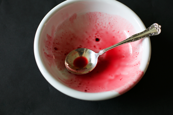 One of my favorite all time desserts is Ina’s meringues w/ raspberry sauce so this is right down my alley. I just love the eery “blood” leftover in the bowl too. 🙂
