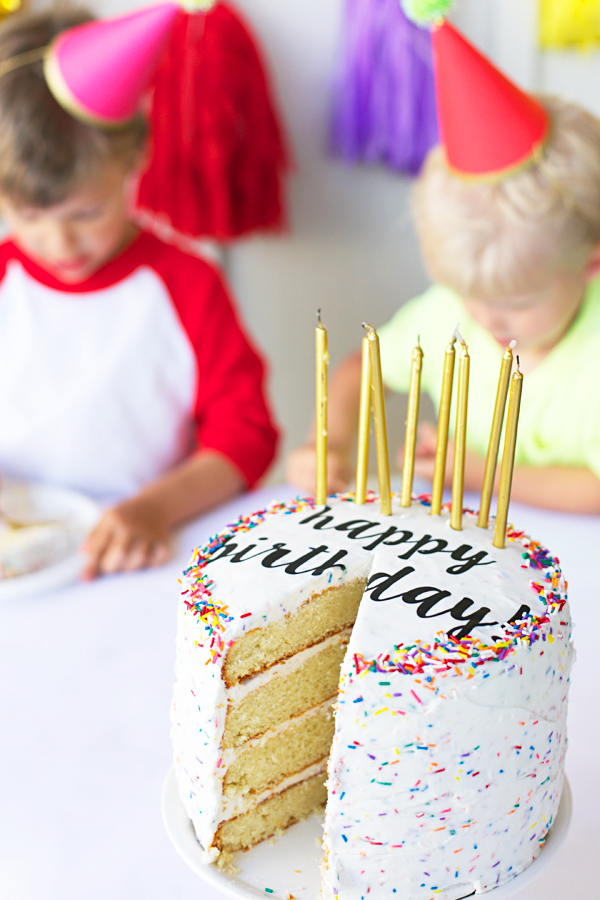 […] of a big deal around our house, especially when the said cake is birthday cake! When preparing for THIS birthday party, black and white elements lent itself to a cake with extra-white buttercream icing. […]