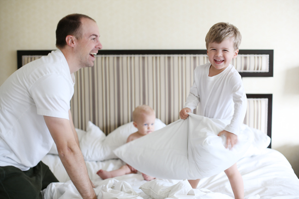 Pillow fights every morning because “jumping on the bed” rules don’t apply when you’re on vacation, silly. After sleeping as a family in a King bed, we’re convinced every family with babies needs one. Husby, clearly we need a bigger house so we can get a bigger bed. ha!