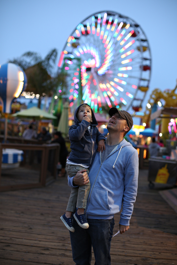 Later that night we hit up Santa Monica Pier for a ride on the iconic ferris wheel. Neither Husby nor I have ever ridden one, making it all the more special to share the experience together. Beck’s little button nose was freezing and Gage wasn’t quite sure being that high off of the ground was a safe thing.