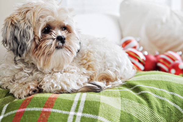 Furbaby LuLu loves to snuggle on the oversized plaid pillows.