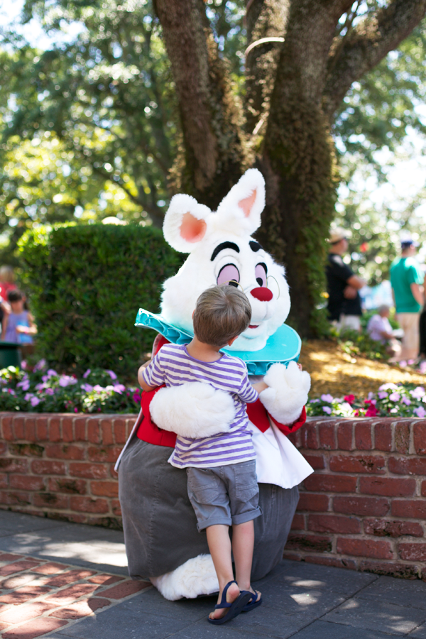 Alice and The Mad Hatter skipped off just before we could take our picture. Gage didn’t seem to mind a bit — after all, the white rabbit is his favorite anyway. Hugged this furry fella until his foot started thumping!