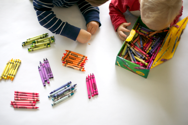 Just a Tidbit: I covered the table with Kraft paper to keep the mess to a minimum; but it also made for the best coloring surface once the crayons were finished! Win win!