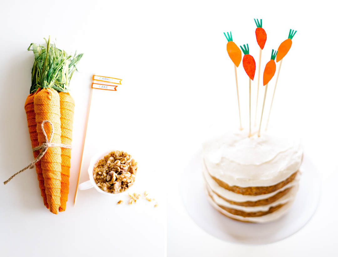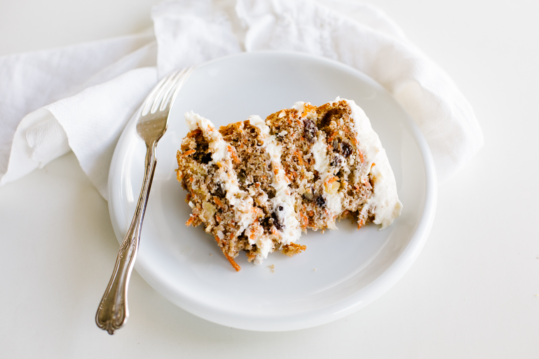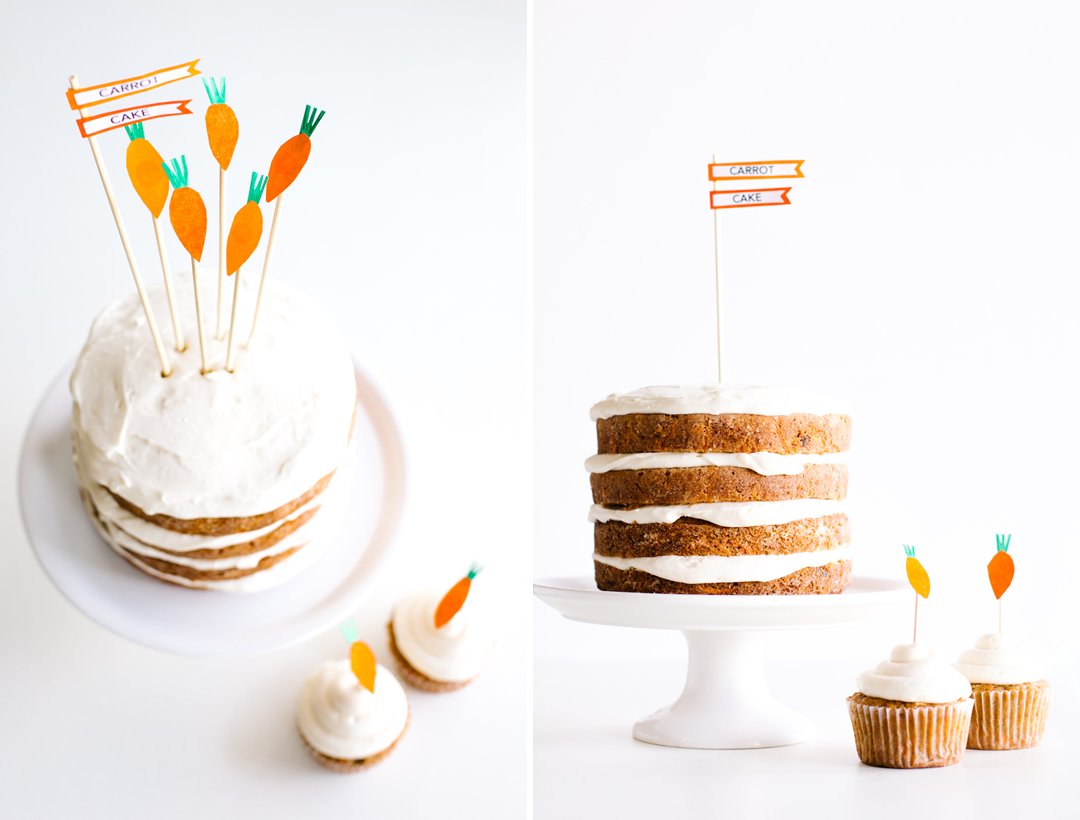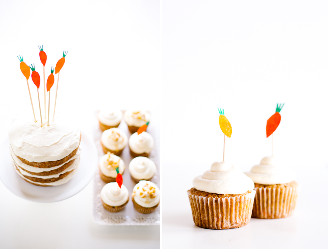 Carrot cake has and always will be one of my favorites. But as any carrot cake connoisseur knows (you know who you are), not all are created equal. I’m sincerely disappointed when a cake claims carroty-goodness but one bite into it and there’s only flecks of cinnamon with no appearance of carrots or the likes mixed in. Call this version ‘over the top’ packed with everything that adds moisture, depth and loads of flavor. The citrus side-kicks (a’hem fresh orange juice and zest in the cake along with fresh lemon juice and zest in the frosting) make this layered lovely, top notch! It’s perfect for Easter and the days following when you’re frowning that all the fun is over. Can you say, cake for breakfast? P.S. You may notice the recipe calls for smaller cake pans. Years ago I stumbled upon the best trick — using smaller pans and creating a four layer cake allows for leftover batter to fill a dozen cupcakes! The cake still easily serves 8 large pieces with remaining cupcakes for little guests or those wanting to keep portion controls in check! Its my favorite way to bake cake for company!