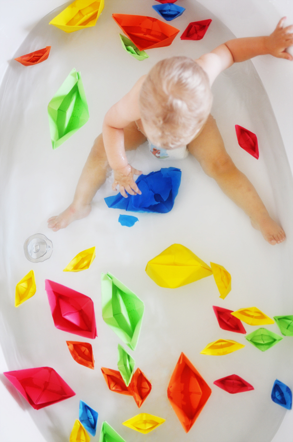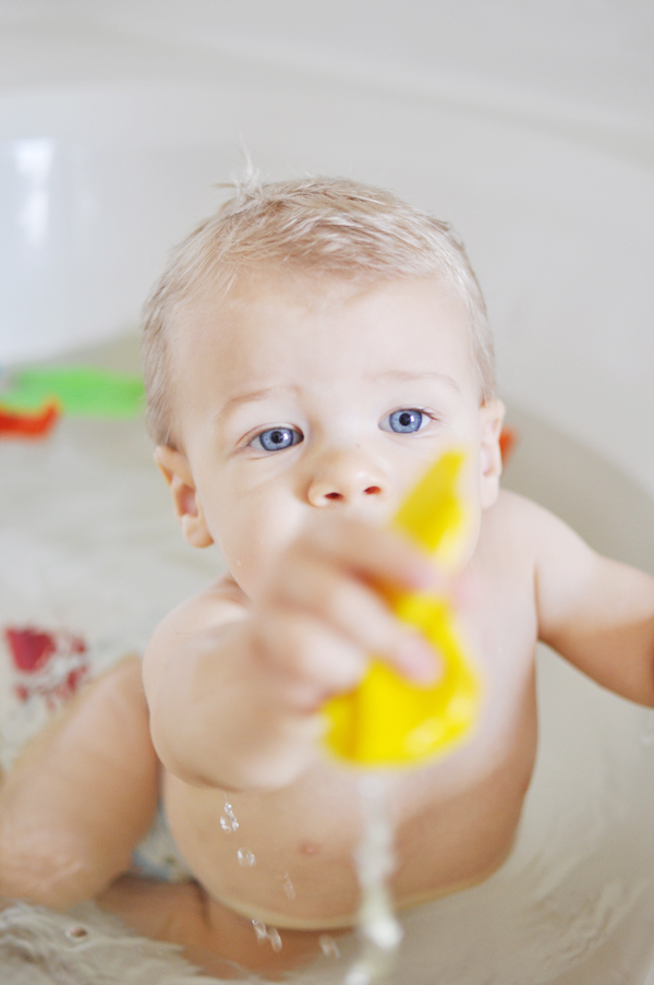Cute up until the point of throwing a tantrum because he had to get out! The boats were literally turning to mush. I think next time we’ll play with the boats in a sink! Thanks, sweetie. xo