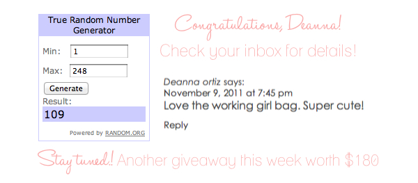 The working girl bag is fabulous! But, my favorite is the yellow one in the picture :] Such a great giveaway, you are right…too many handbags is just impossible.