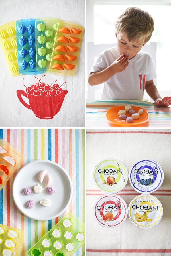 A special thanks to Target for making this post a one stop shop: chobani yogurts and $1 bin fruit ice-cube trays can be found at select stores.