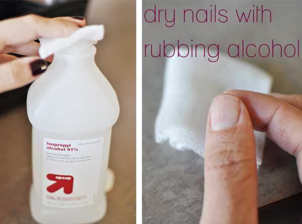 The rubbing alcohol takes off the sticky film from the top coat (final step). To completely remove the polish, acetone nail polish remover will take it off. Hope this clears it upβ¦ no need to apologize. Heck! I’m a blonde writing the steps for another blonde to follow! haha!
