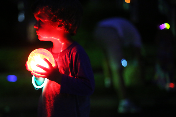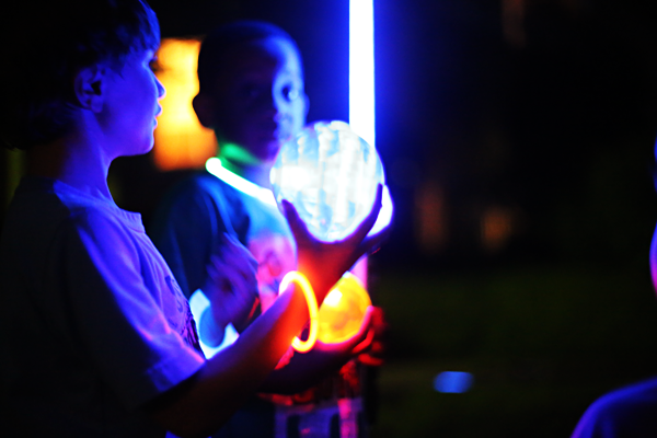 In August, it doesn’t cool off until well after the sun goes down. We broke the rules and stayed up well past bedtime to host glow in the dark bowling for our neighborhood friends. Use empty soda bottles, glow sticks, and glow in the dark balls (all found at Target in the summer section) to have hours of late night fun!