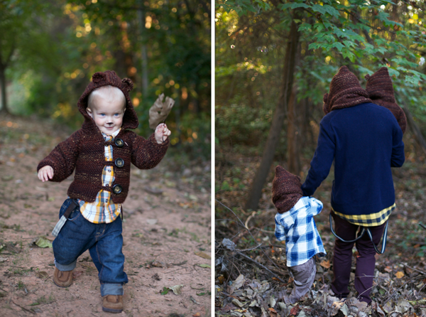 These pictures are priceless! Did you knit the bear outfits yourself? If so, I admire you!