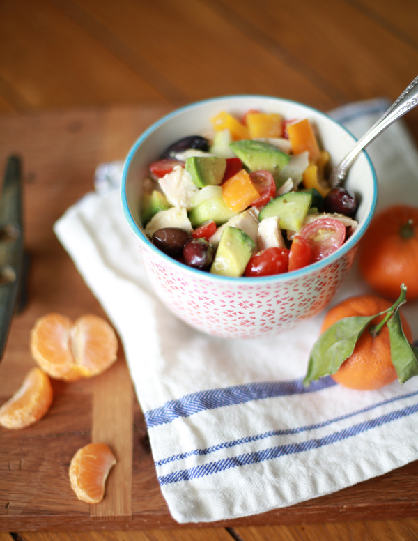 Unlike dinner, I rarely plan ahead for lunch. Having this simple salad as an instant go-to makes lunch a no brainer. Don’t judge it on its simplicity… it’s by far one of our favorite fresh dishes! On Sunday, I prep all the veggies, pull the chicken, and store it in glass containers in the fridge. It’s perfect for packing to work, serving as a side to a main dish, or even eating as a late afternoon snack!