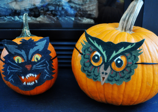 I LOVE those masked pumpkins! What a cute idea! and I love the gold pumpkins to, very nice! Good luck traveling with the little one!