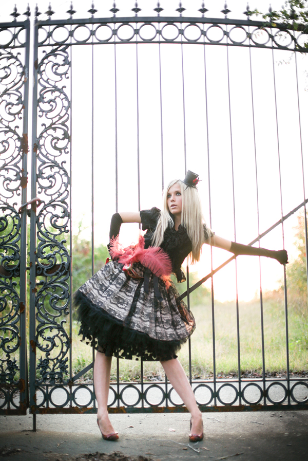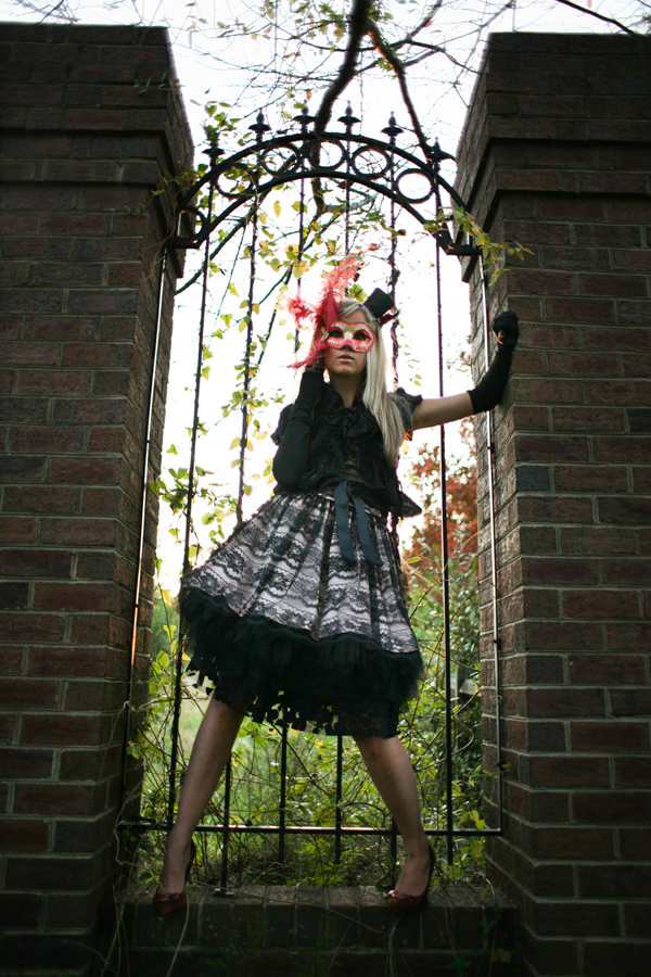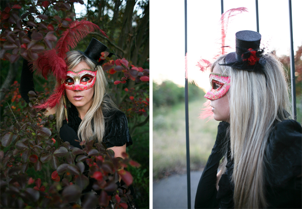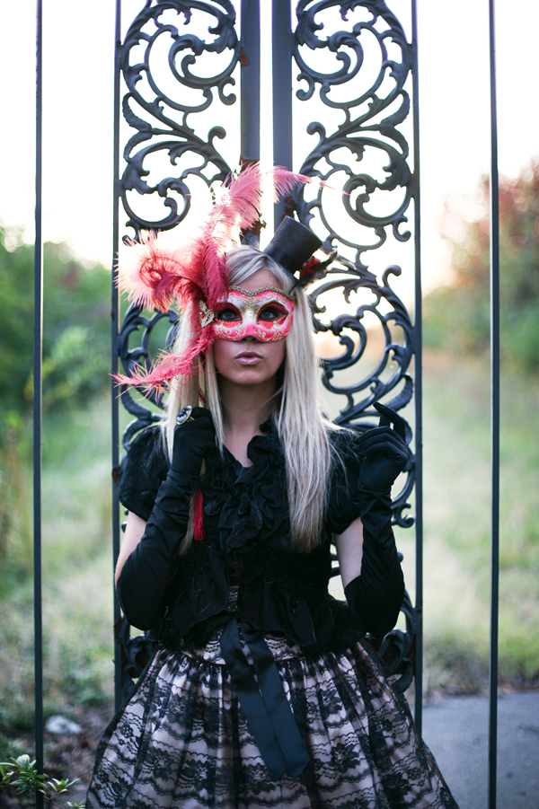 I’m completely obsessed with these pictures, everything about them is amazing! That dress, mask, and cute little top hat.. AHH! Hot mama!! It’s very Alice in Wonderland-y to me!