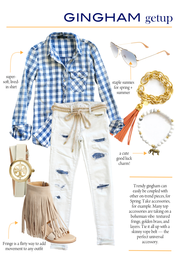 One of my favorite trends for spring is gingham! It’s a classic picnic plaid that instantly makes me feel happy! Recently I put together an editorial piece that features a way to wear it effortlessly (seen here). This season you’ll spot gingham in dresses, shorts, bags, shoes and more. Picnic basket and all the fixin’s totally optional!