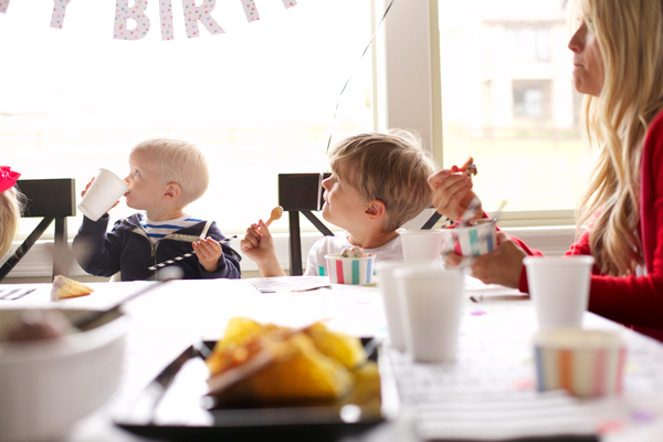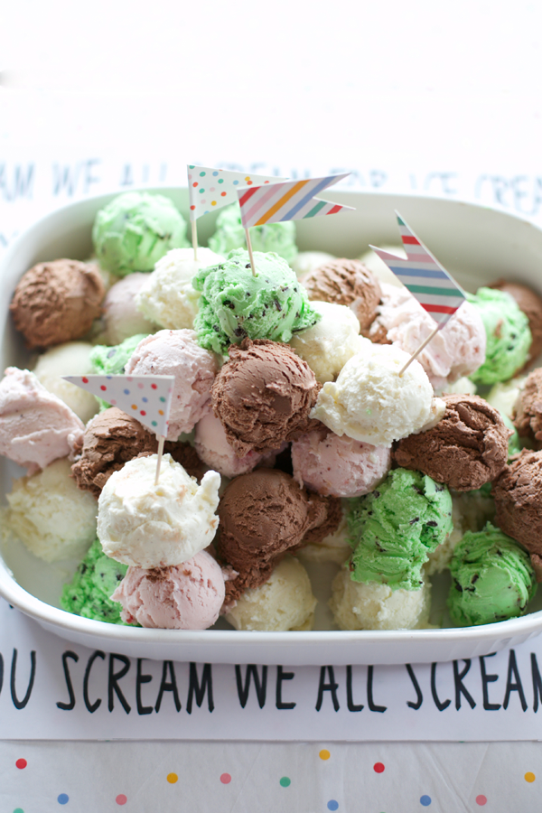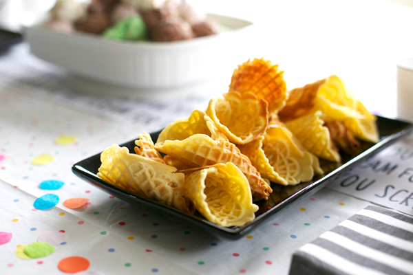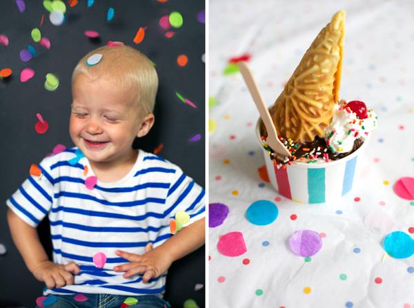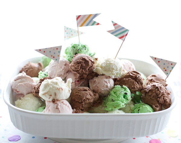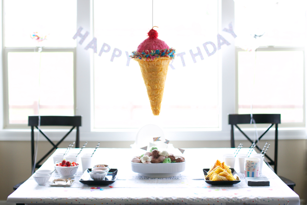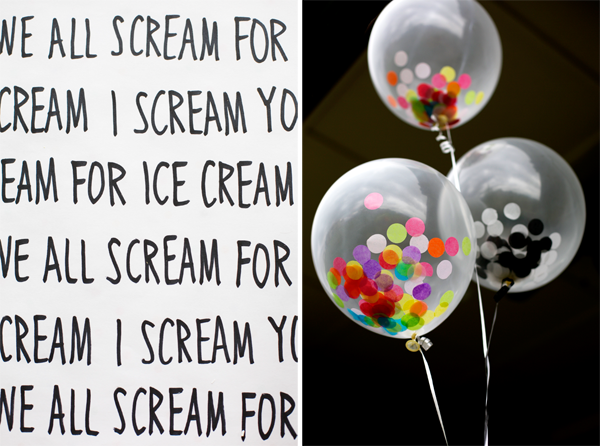 Toss some tissue paper confetti into clear balloons, hang a piñata, spend your time baking cones instead of cake, pile high the ice-cream flavors, and call it a simple and sweet ice-cream birthday bash!