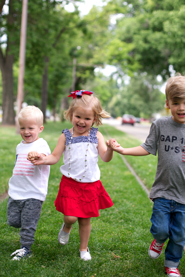 The 4th of July is quickly becoming one of my favorite holidays — partly because of how much my littles love it! I made the mistake of telling Gage (2 weeks before) that it was coming up. Every day leading up, it was lots of questions about fireworks (if they’d be as loud as last year and how we could make sure Daddy wouldn’t get the screechers). Oh and lots of explaining how a parade works — I dare you to try describing what to expect to a 4 year old who has never been to one. More exercise for your noggin’ than a crossword, or scrabble, if you’re into that. The day was spent with my family (can you get over how adorable my little niece is?) She and Gage are quickly becoming little besties. The afternoon was filled with beach ball volleyball, 28 holes of golf for the guys, naps, barbecuing, and endless rounds of throwing ‘pop-it’s’. The forecast called for rain; but fortunately Mother Nature decided to be good to us — finishing the night with classic ice-cream sandwiches, fireworks, and my favorite … sparklers! It was a very happy birthday for the US of A!