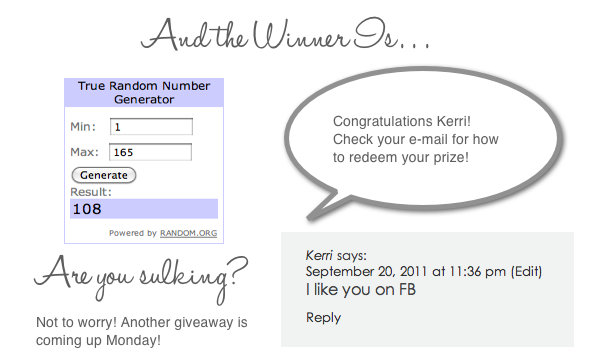 Giveaway winner announced Friday, September 23rd! Good luck!