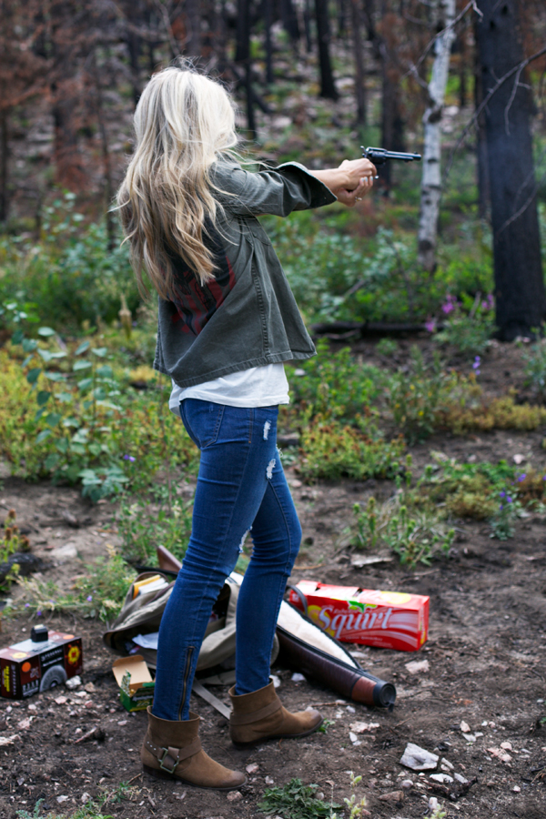 It was my first time shooting a gun (and my sister-in-law’s too)! Purely for recreational purposes, of course. I’m thankful my brothers aren’t into the whole ‘harming furry friends’ thing, either. Who knew shooting Fresca cans in the middle of Colorado nowhere would be so fun.