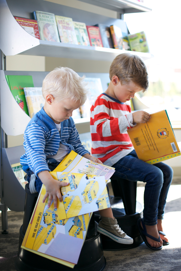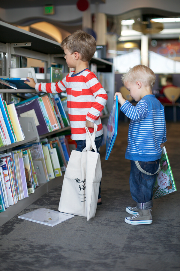 With all the new construction going on around here, sometimes it feels like there just isn’t time to stop midday and soak in a good read. I cherish our time together before bedtime, snuggling in covers and taking our time flipping through stories of alligators under the beds, goldilocks with all her shenanigans, and shining shadow silhouette stories on the walls. But lately we’ve needed an extra dose. A weekly visit to the library on Tuesday mornings, is kind of magical (other than when they race down the rows, “whispering loudly” — you know, basically yelling with excitement over all the bright new books they’re discovering). Oh and story time, is always a hit too — the puppets, and songs, and new friends. It’s a grand ‘ole time, being their Mama and doing all the things Mamas and their babes, love to do!