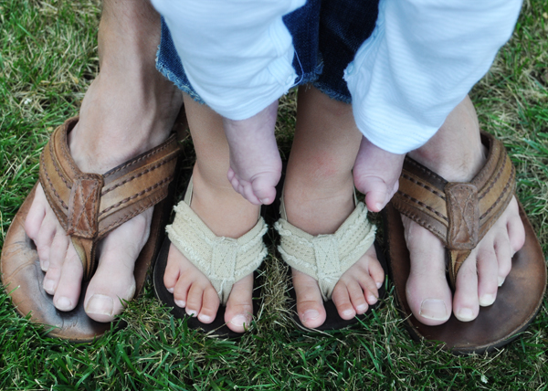 Now those tiny baby feet have grown into chubby toddler ones. Whose pudgy little piggies beg to wear flip flops just like his Dad’s.