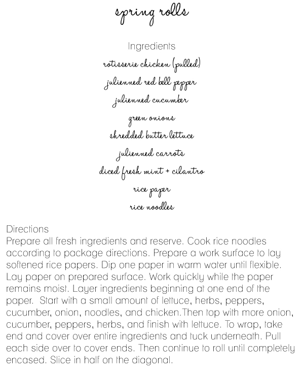 I’ve been at it again – making a knock-off recipe I can’t live without! It’s sad when I call in a take-out order & they answer saying, “Thanks for calling Pei Wei. Missy, will you be having the GF Vietnamese Chicken Salad Rolls or the GF Pei Wei Spicy Salad tonight?” I laugh every time! Thankfully over the phone they can’t see my face blush, fluorescent PINK! I kinda have a feeling I’m a real live version of Sandra Bullock’s character in Two Weeks Notice. You know the pathetic take-out order scene? Yeah. Enough said. So, in efforts to be less pathetic & to save my pretty pennies – I took my best kungfu attempt at mastering it! Take it from Mr. Breadwinner {our family’s food connoisseur} … “Winner winner chinese chicken salad spring roll dinner!” Take a roll at it, why dontcha!