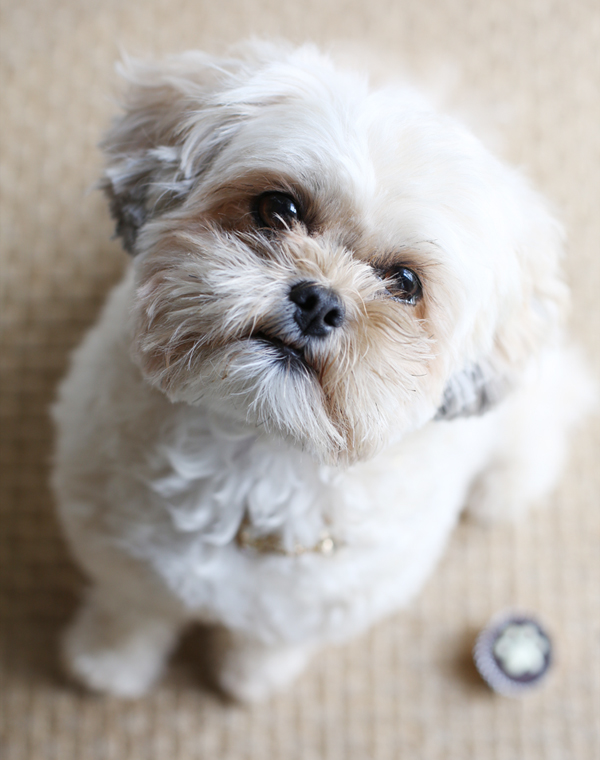 Every now and again, LuLu and I like to go to a boutique for dogs – just for “old times” sake. You know… before BOYS took over everything. Her favorite part is getting a goodie from the bakery case. The last time we went, she tried the cute little puppy peanut butter cups!
