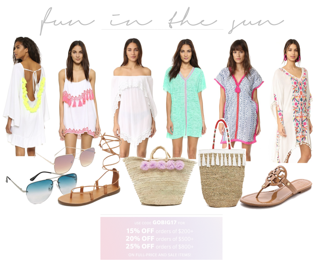 My birthday is coming up and to celebrate, Husby is taking me for a quick little trip for some R&R! We’re crossing our fingers for warm enough temps that call for soaking up a little sunshine by the pool, with a smoothie in hand. So, I’ve been on the hunt for cute and comfortable resort wear because, well… a’hem swimming suits and a baby bump. I could bore you with my hilarious attempt to shimmy into a suit I was hoping to still fit into; but I’ll spare you! Ha! Just my luck, Shopbop is having an awesome sale from now until March 4th with an extra 15 — 25% off using code: GOBIG17. Perfect timing to buy a few things using my Amazon Prime account (yes, free 2 day shipping) and if it’s doesn’t work, no biggie with free returns! I’m also looking at splurging for a staple jean jacket for Spring and possibly stocking-up on winter essentials (like a down coat) for next year! Happy Shopping!