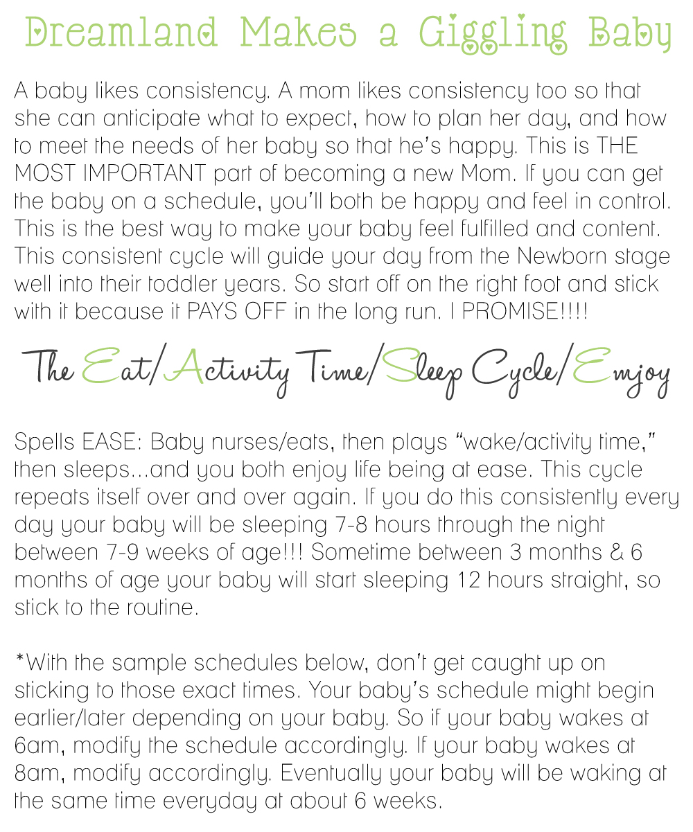 Sleep schedules are a combination of several books (yes, one being Babywise) I read plus personal opinion/experience.