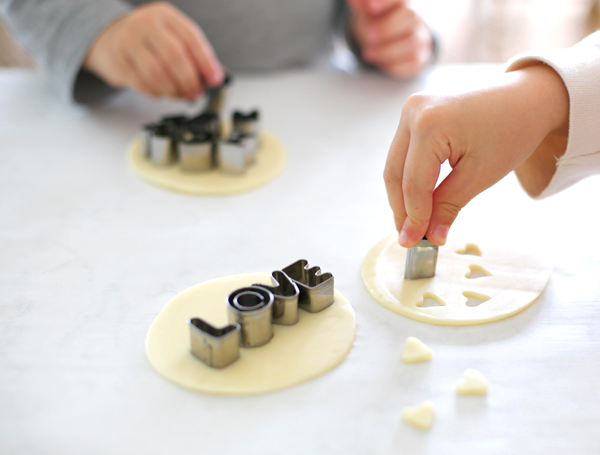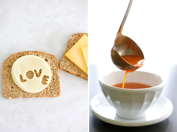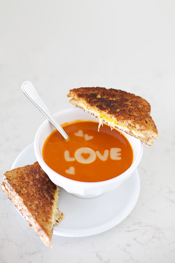 It’s easy to make anyone’s heart skip-skip-a-beat by adding cute garnishes to one of food’s most adored couples — grilled cheese and tomato soup! Let little ones stamp sayings and hearts from provolone cheese using fondant and mini cookie cutters. (psst! the mini circle was made with an icing tip). It’s time for Sammy to take a swim in the sea of love!