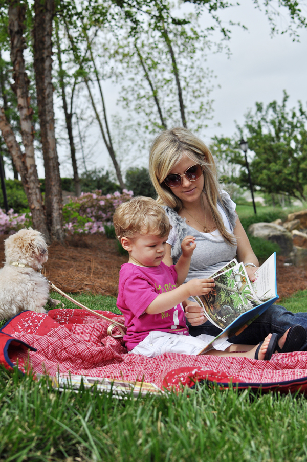 Sunday morning called for a family picnic at the park. The sun was shining, birds were singing, and the aroma of all the Spring blossoms blew through the breeze. If only every morning could be this relaxing. Reading his favorite stories, munching on freshly baked biscuits, and feeding the ducks? That spells happiness.