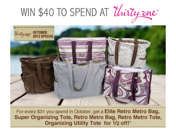 To enter, go to Thirty-One, browse around, and state what you’d like to win in the comment section!
