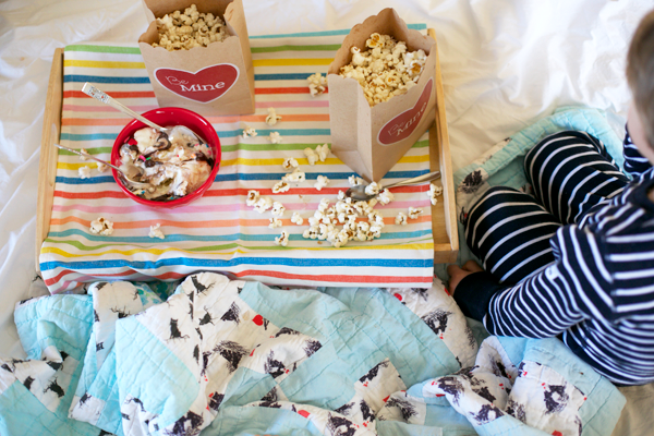 - heart banner: target | popcorn bags: c/o pottery barn kids | red bowl: anthropologie | ice-cream spoons: c/o milk and honey | tea towel: ikea (old) | quilt: antique