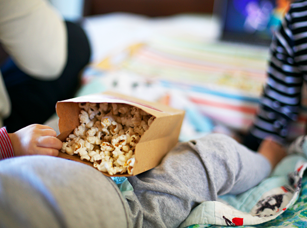 Cuddling up in bed with a movie and treats is the best way to spend a Sunday!