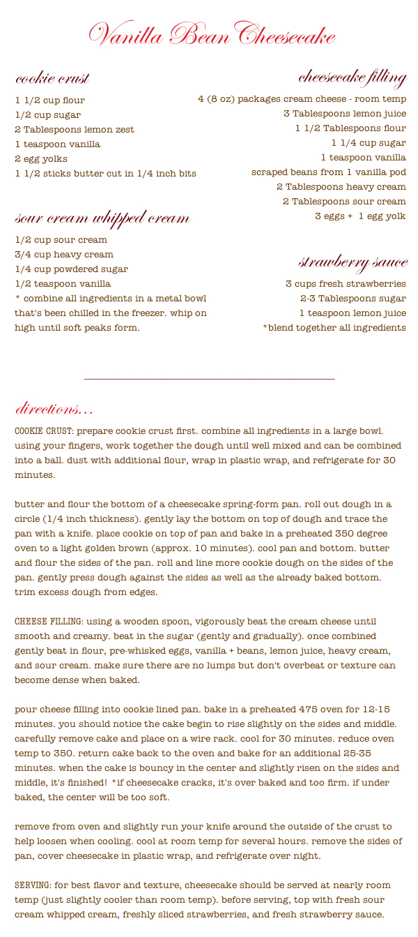 Vanilla Bean Cheesecake Recipe (PDF version)