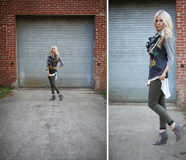 - shoes – c/o ShoeMint, skinnies – Zara (old) similar HERE, blouse – Nordstrom, baseball tee – F21
